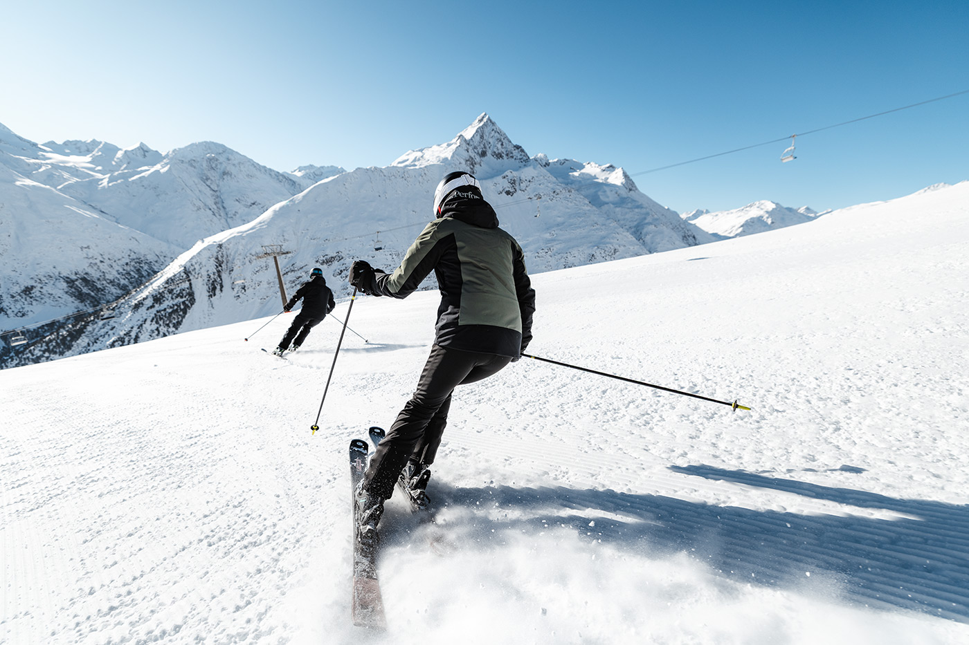 Nur wenige Schritte trennen euch von der Giggijochbahn-Talstation und der spektakulären Pistenwelt des Skigebiets Sölden. Die Frage ist nicht, ob ihr die BIG3 – drei Dreitausender in einem Tag – meistern könnt, sondern ob sich dazwischen noch ein Après-Ski-Boxenstopp ausgeht. Wir sind gespannt.