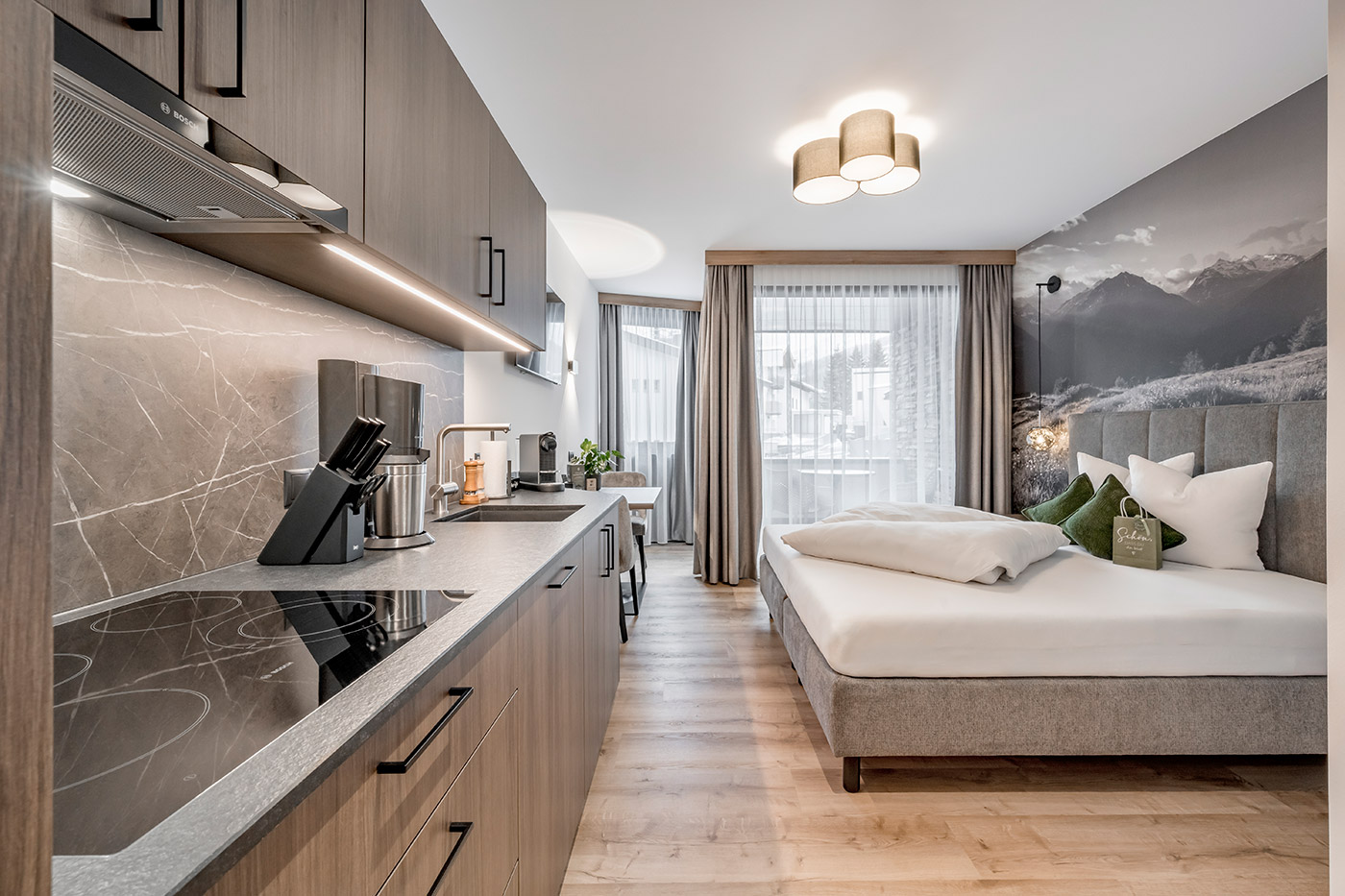 Das Beste aus beiden Welten: Tagsüber erobert ihr die 250 Dreitausender des Ötztals und nachts feiert ihr in der legendärsten Bar Söldens – die nicht zufällig den gleichen Namen trägt wie euer stylisches Lieblingsapartment. Wenn’s Zeit für die letzte Runde wird, sind’s nur ein paar Schritte in euer Premium-Apartment. Hier erwartet euch Luxus mit spektakulärem Bergblick, der euch selbst nach durchfeierten Nächten wieder auf die Piste, den Wanderweg oder den Bike-Trail lockt. Inkl. Sauna & vielen alpinen Vorteilen.