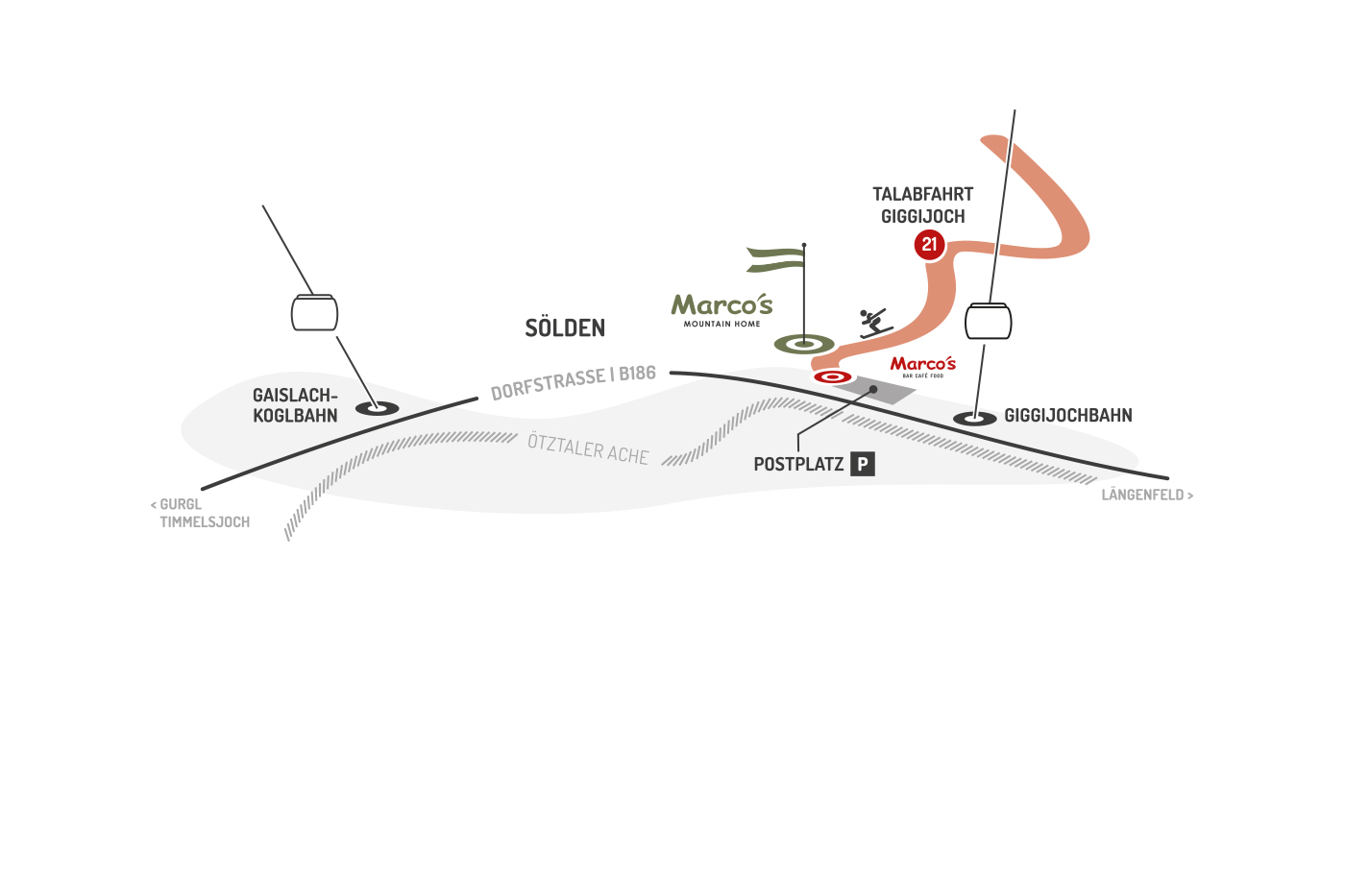 Mit den Apartments von Marco’s gehst du keine Kompromisse ein: direkt beim Marco’s Bar, Café, Food, das entweder schon eure Lieblingsbar in Sölden ist oder es vielleicht bald werden wird – und ganz nah an den Highlights des Ötztals. Skigebiet, Talabfahrt, Wanderrouten, Bike-Trails und Après-Ski, Restaurants und Sportshops. Wir nennen es den schönsten Fleck Erde. Und ihr?